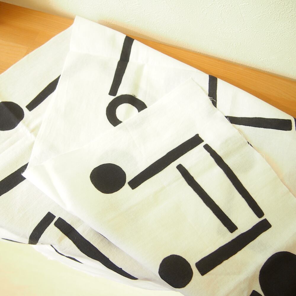 白地に黒のシンプルさが模様を引き立てます。