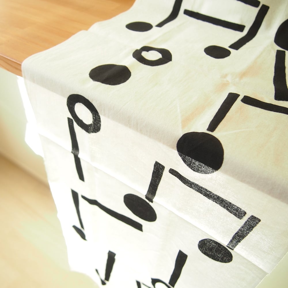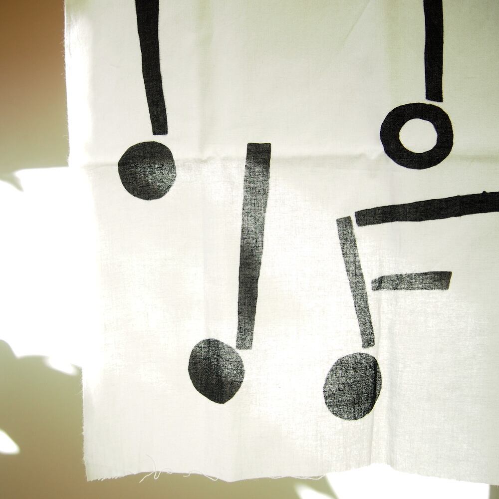 まると直線でリズミカルに描かれた音符が並んだデザイン。