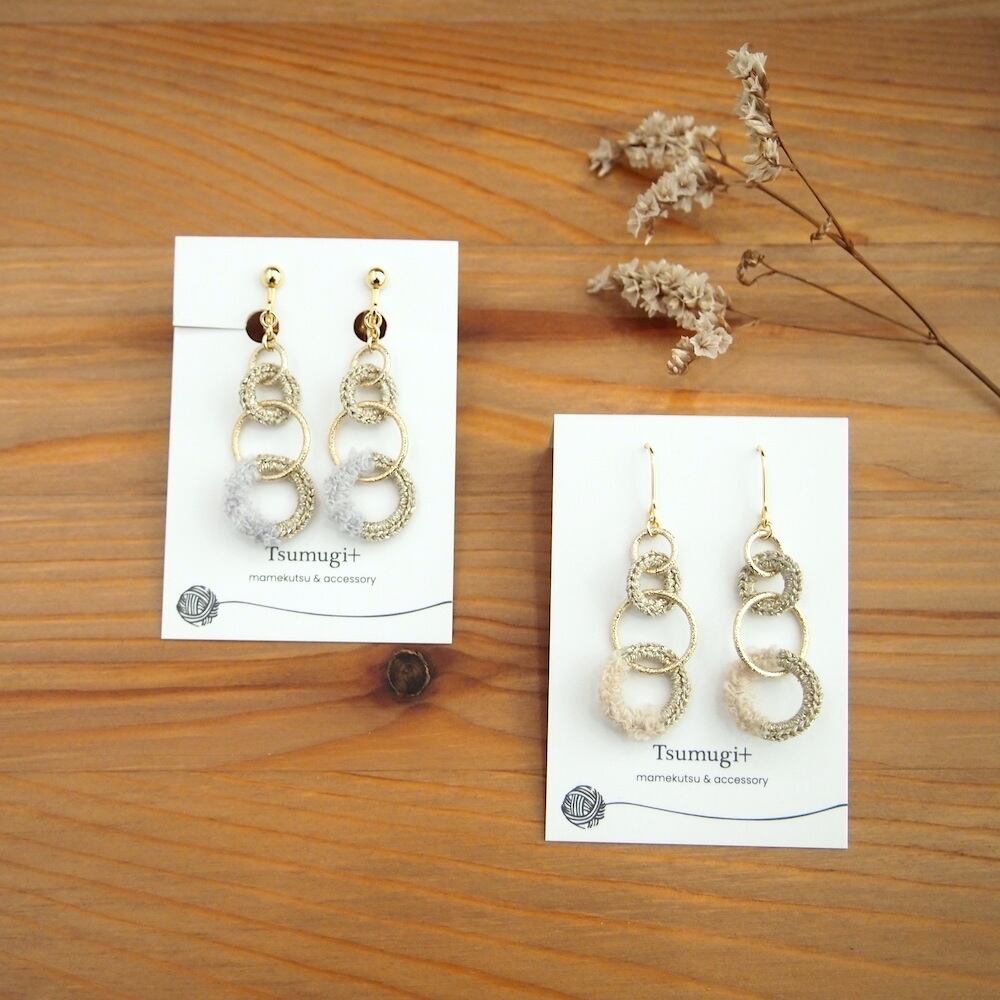 Tsumugiさんの手編みアクセサリーです。