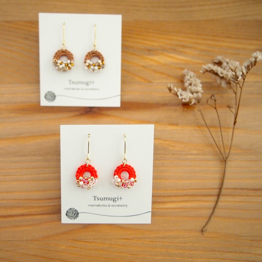 Tsumugiさんの手編みアクセサリーです。