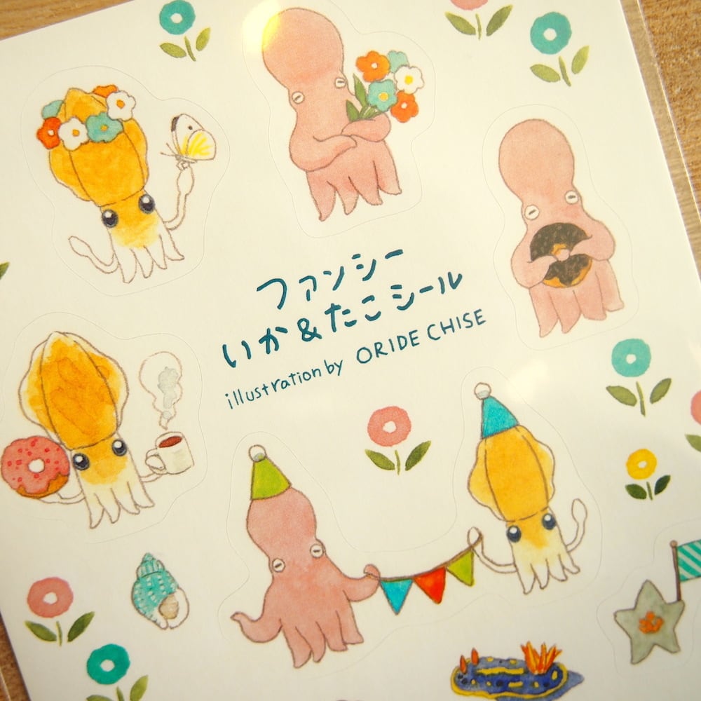 ファンシーでかわいいいか&たこと仲間たちのデザイン。