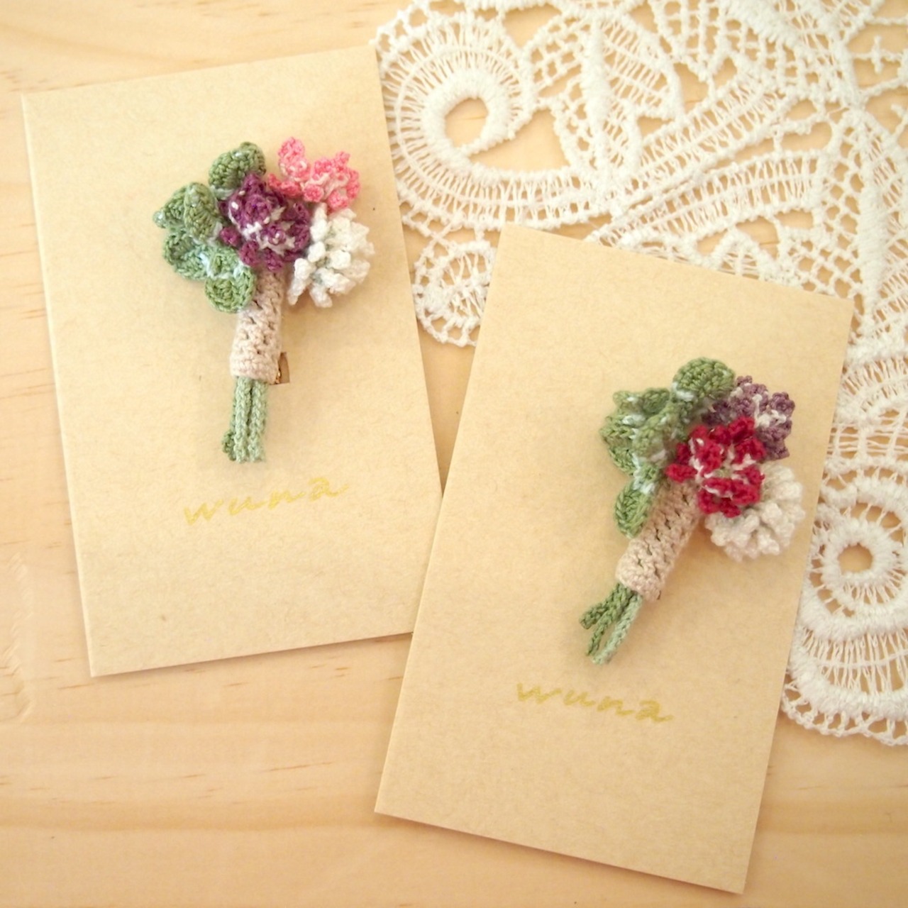 レース編みアクセサリー作家wunaさんの作品を期間限定で取り扱っています。