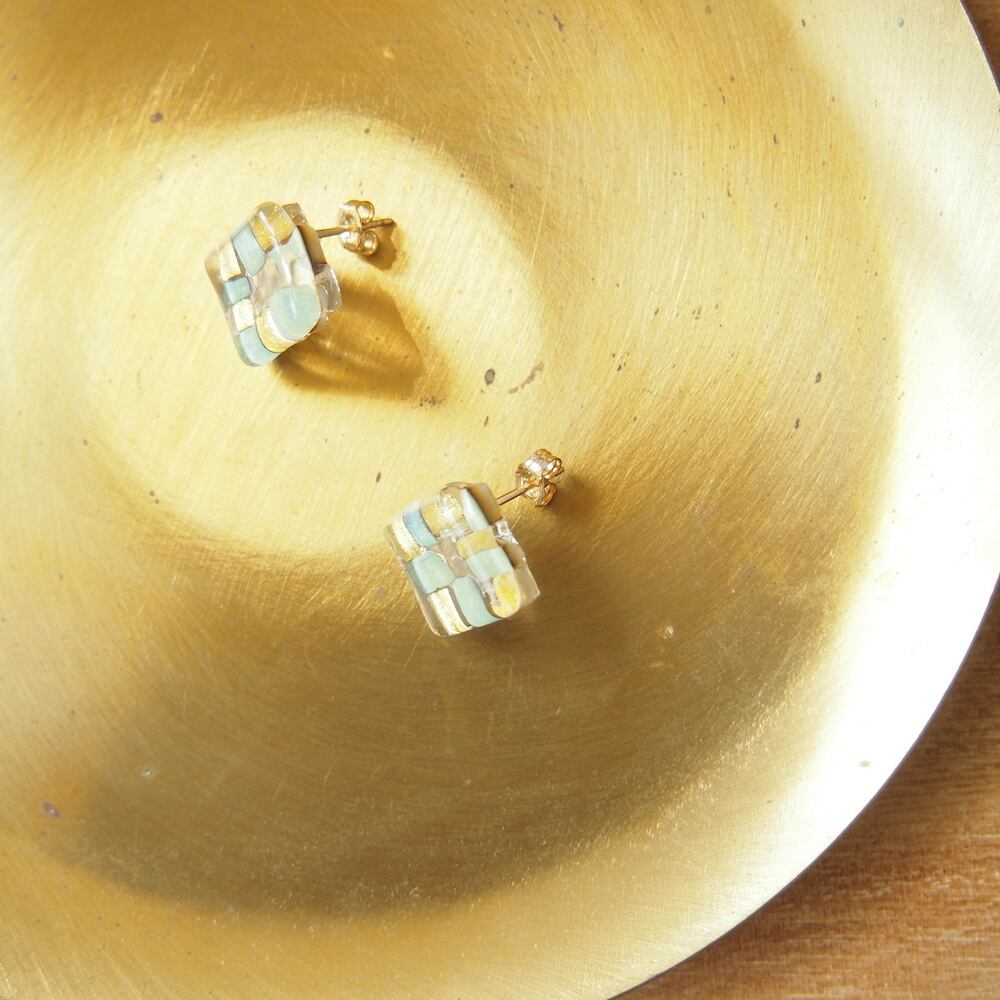 ガラスアクセサリー作家 anone na-niさんの耳飾りです。