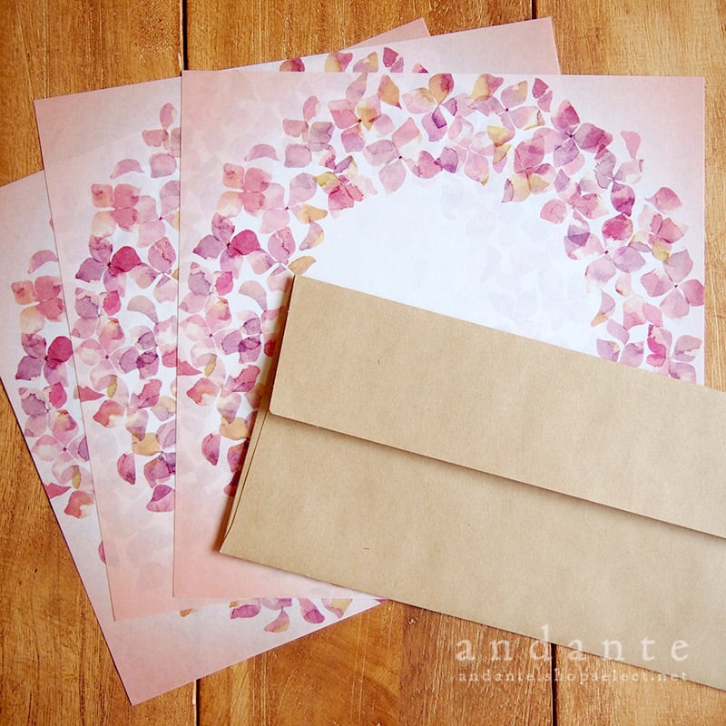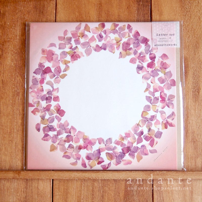 紫陽花のリースを全面にデザインしたレターセット 秋の新色です。