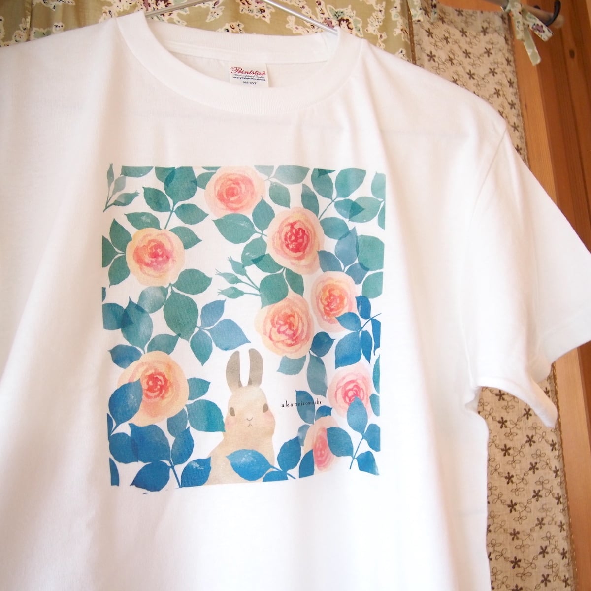 長くご好評いただいているうさぎとバラを描いた『garden』を胸元に大きくプリントしました。