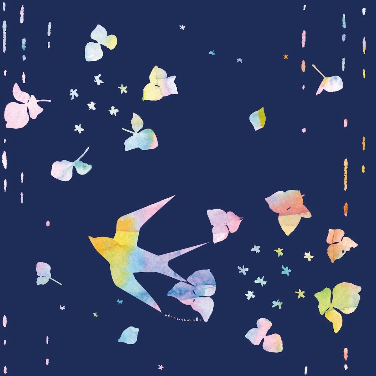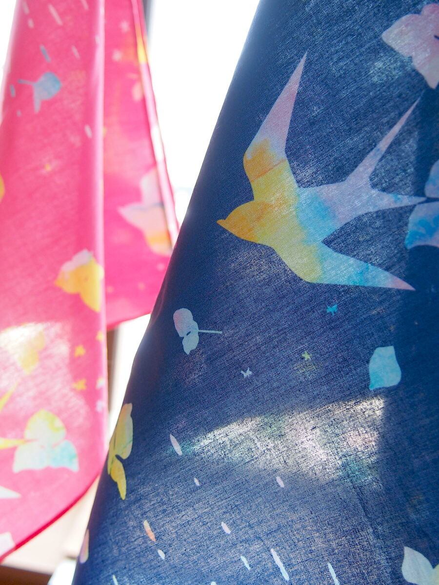 ツバメとガクアジサイをモチーフにした模様です。