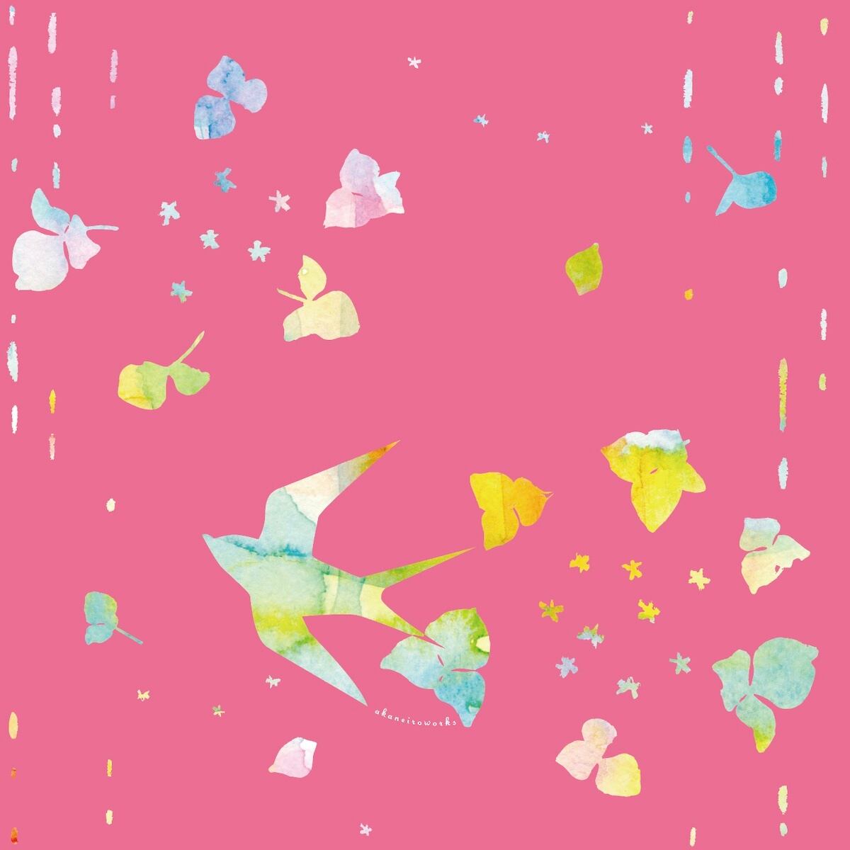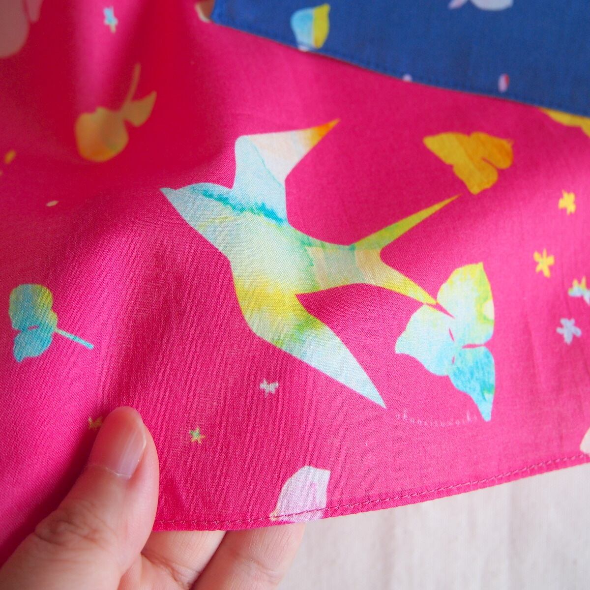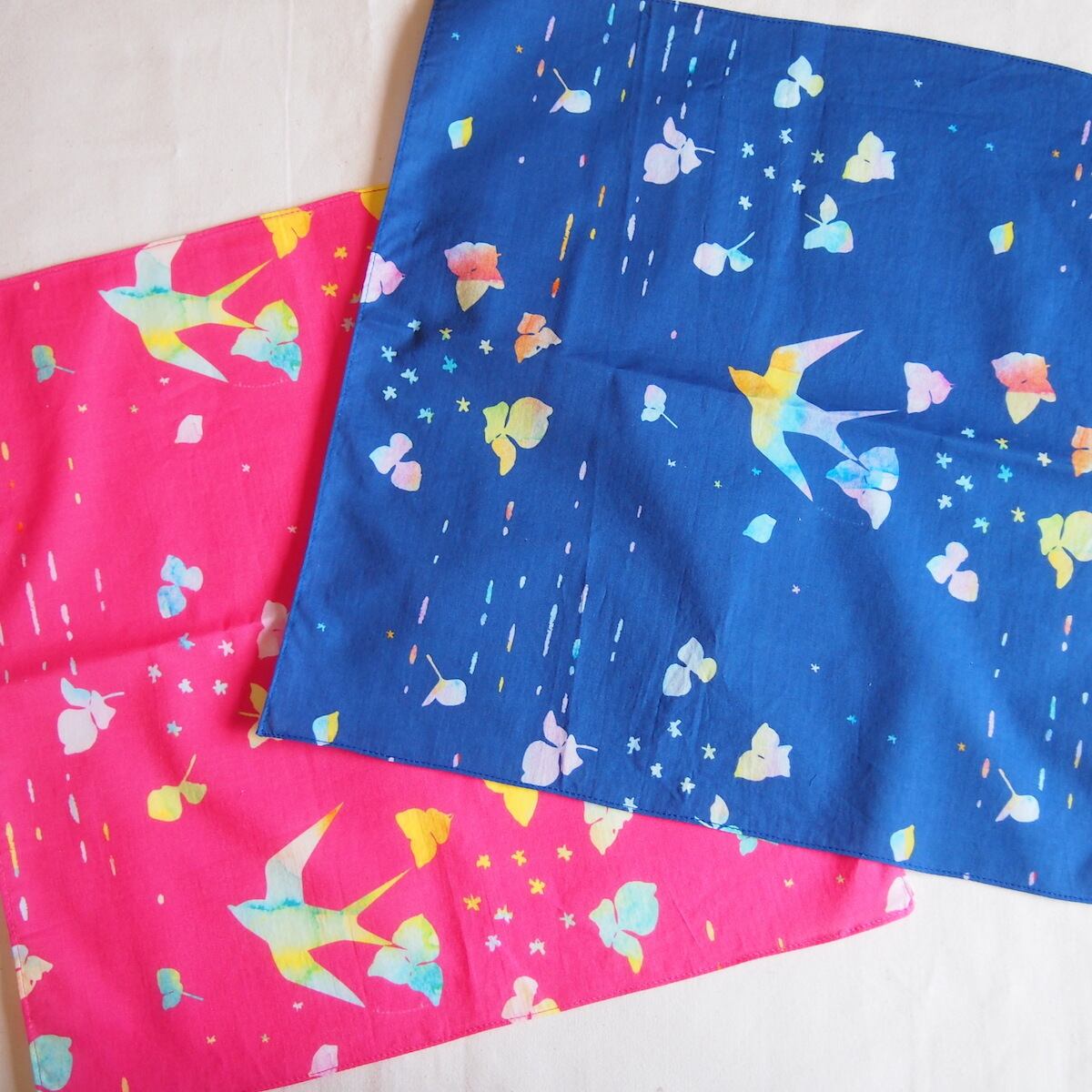 アカネイロワークスのデザインをプリントした生地でつくったハンカチです。