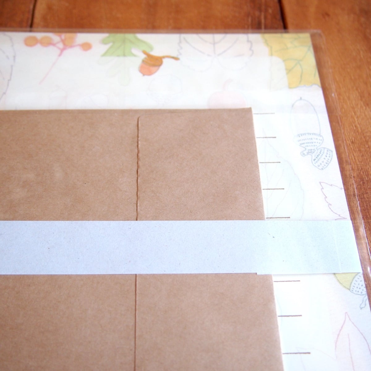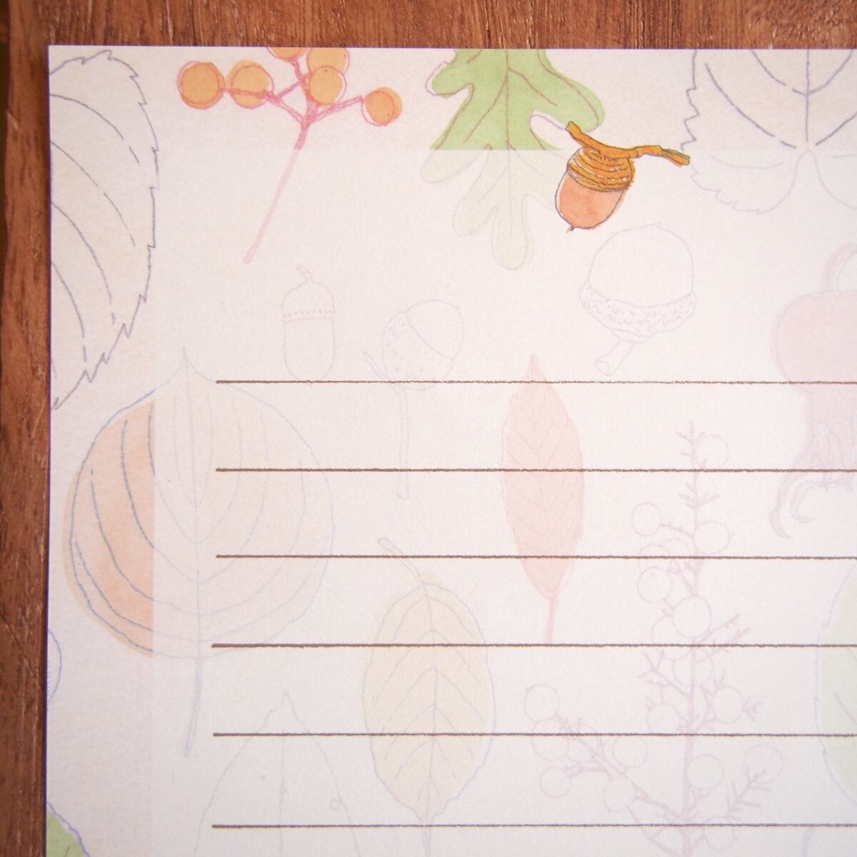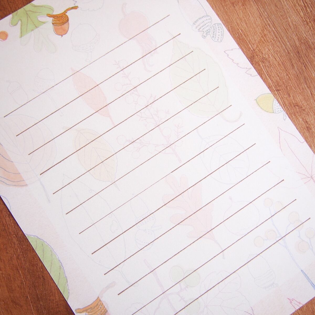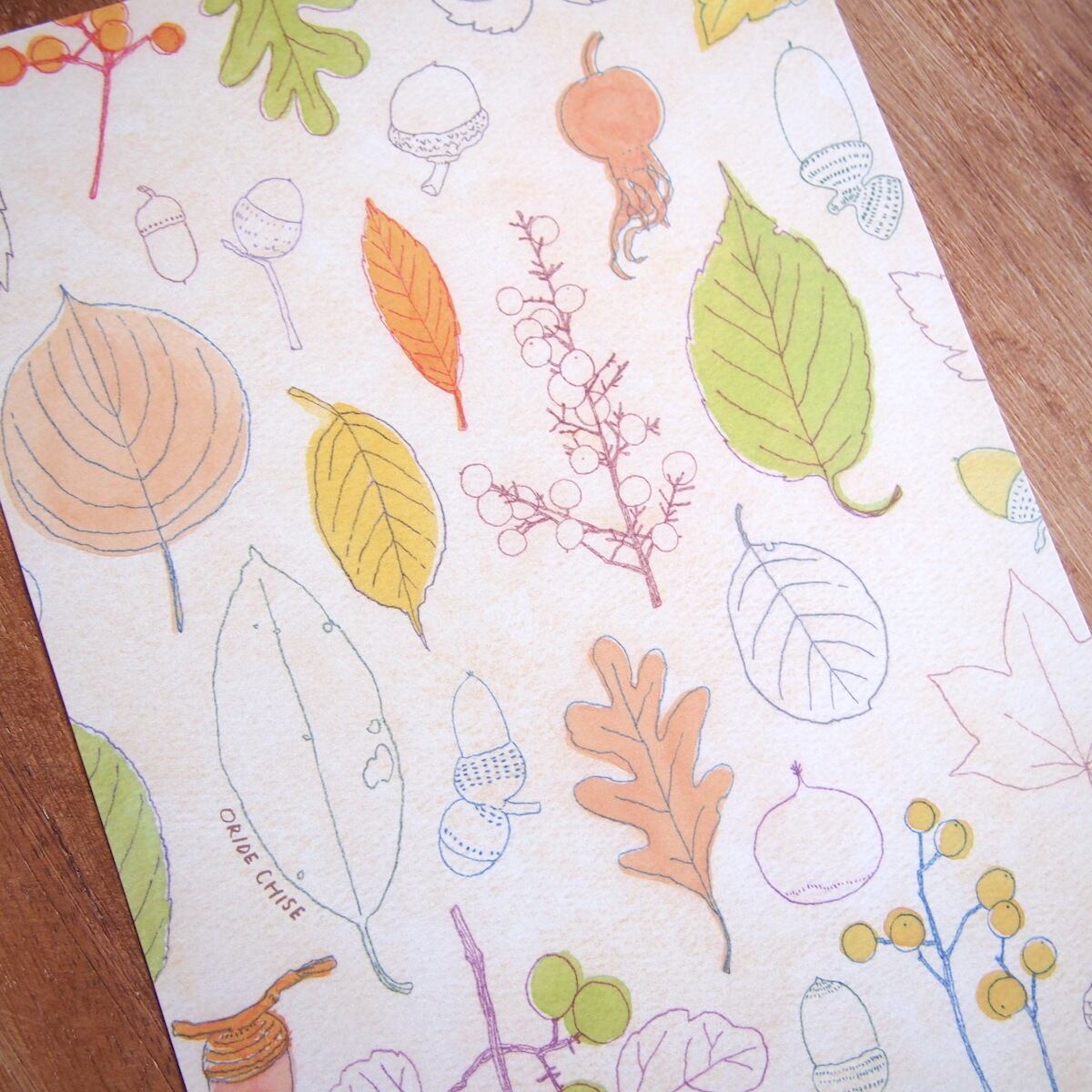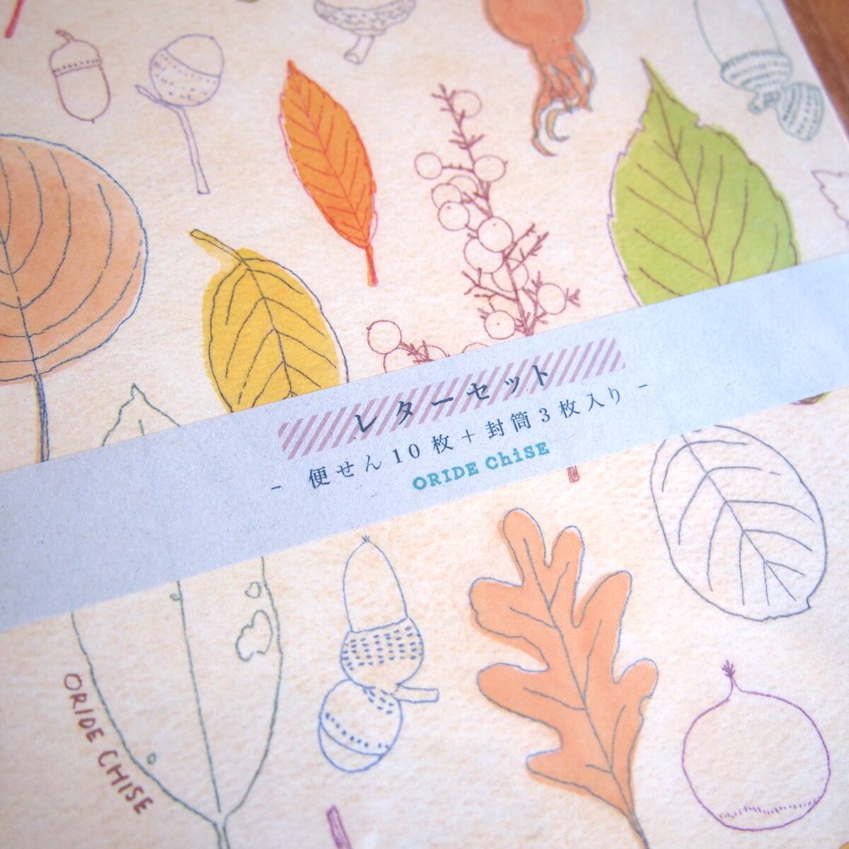 さまざまな種類の葉っぱが描かれた秋にぴったりのレターセット。