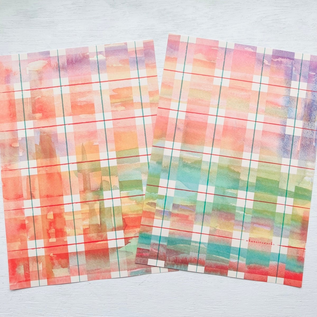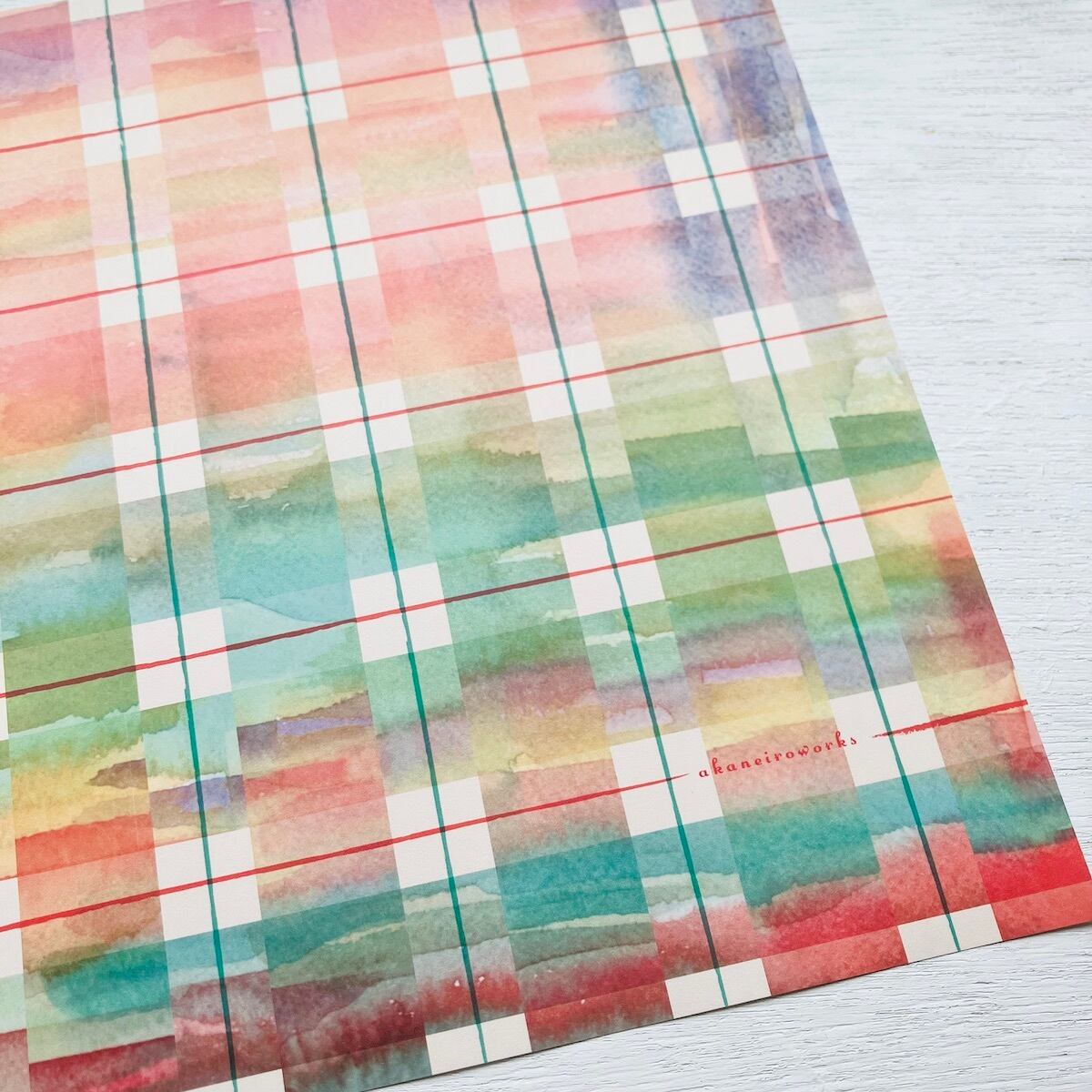 暖色をベースにした水彩のチェック柄で