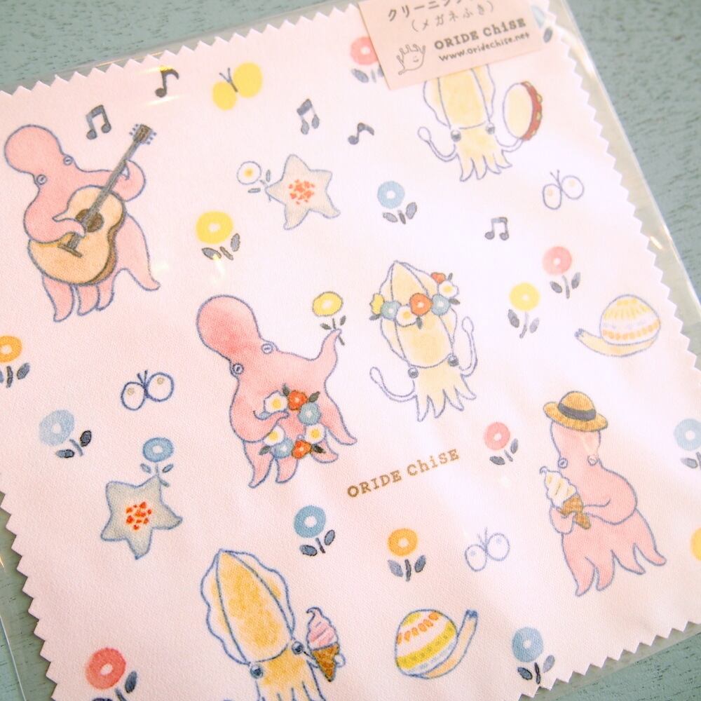 イラストレーターおりでちせさんのクリーニングクロス(メガネ拭き)です。
